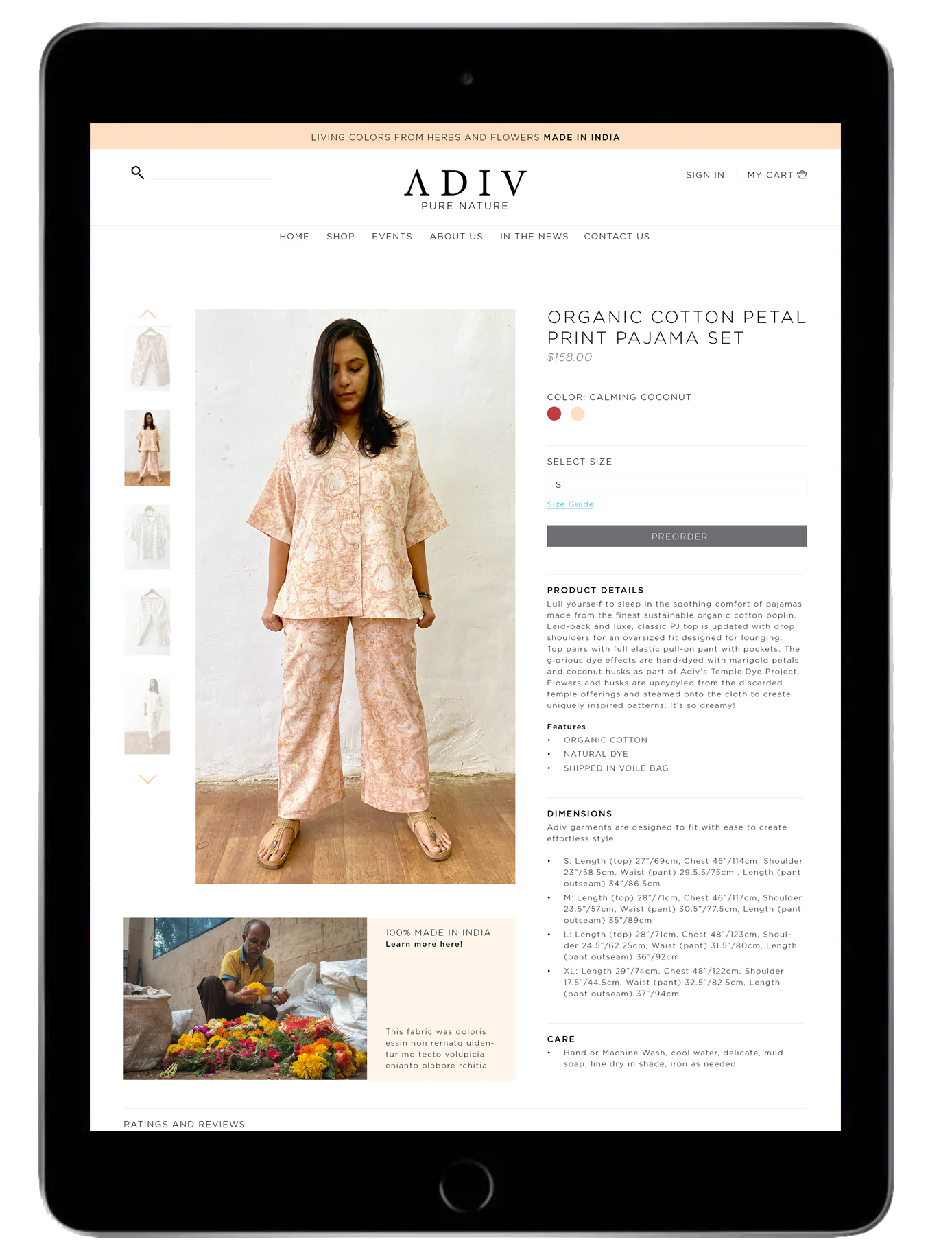 Redesigned the website for ADIV is a female-owned, sustainable, artisanal manufacturer of natural-dyed textiles, apparel, and lifestyle products.